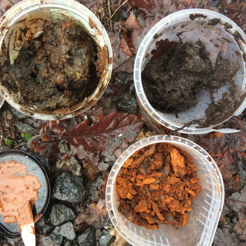 A school, flock, parliament, charm or murder of artists? A very enjoyable day creating at Yarner. We are all responding to PLACE on the Granite Elements Project. Made a start on the earth painting, the rain helped. Happy face.