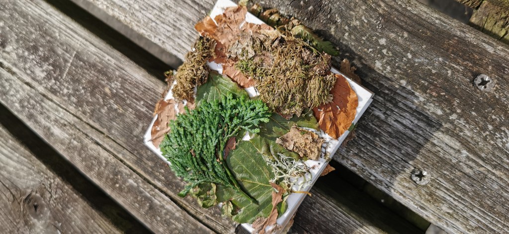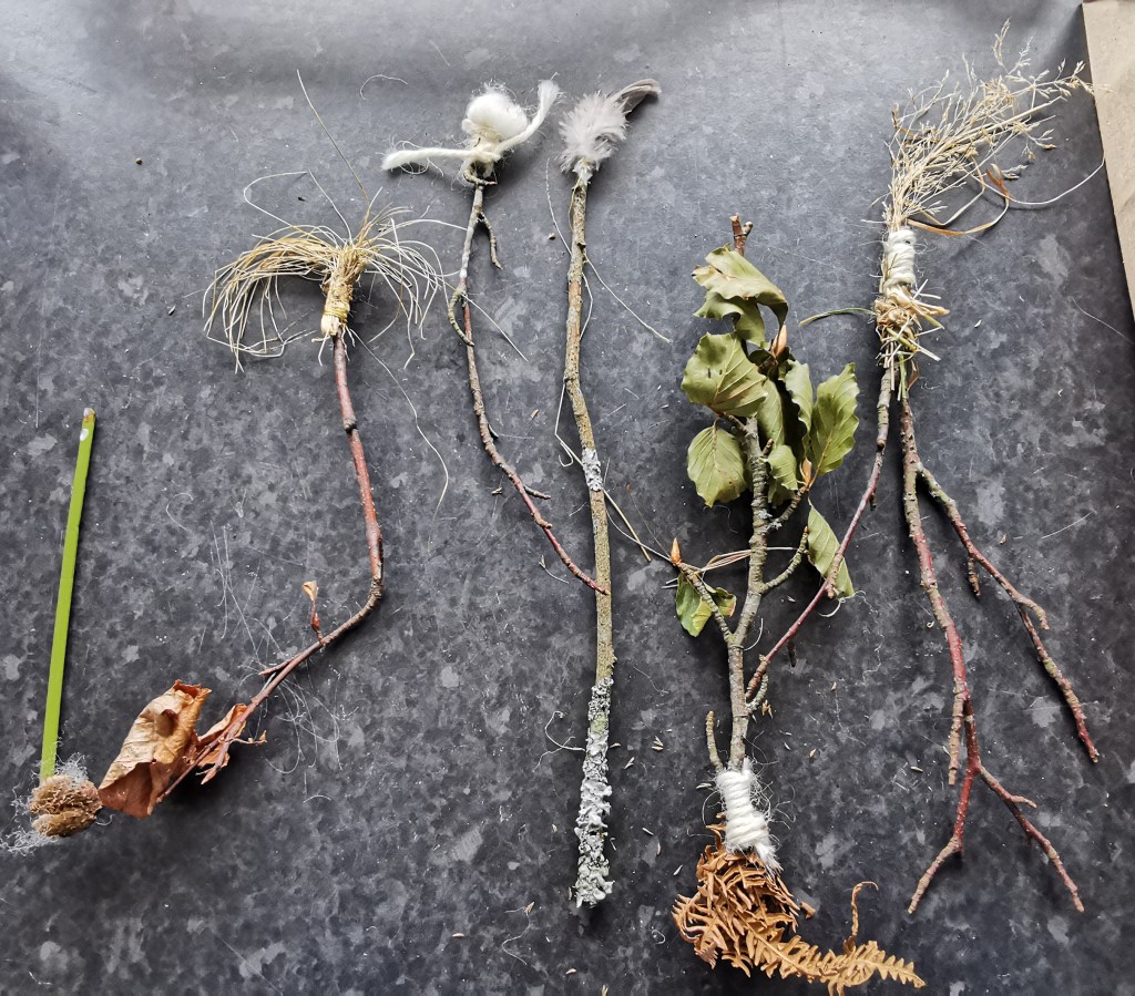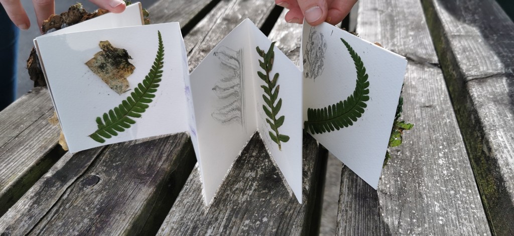 We used mark making to record what we saw and found nature for painting tools. Ripe blackberries gave us a lovely maroon paint. Recycled card and old Dartmoor maps for concertina sketchbooks all tied with Dartmoor wool thread. Simon helped us all improve our photography skills!